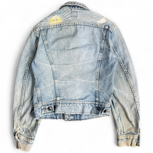 70s Lee Riders Sanforized 220J Denim Trucker Jacket Embroidered Sun & Moon Women’s XS/S