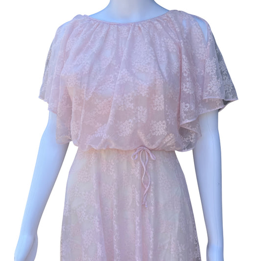 70s Union Made Floral Pink Lace Capelet Split Sleeve Maxi Dress Union Made Women’s XS/S