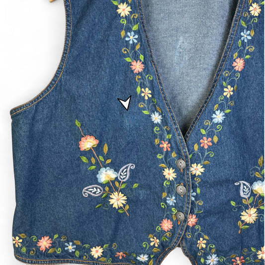 90s Resist Plus Floral Embroidered Denim Vest Women’s 22