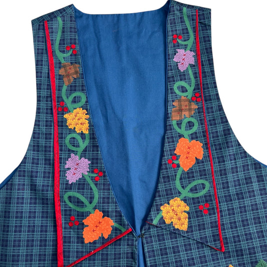 90s Autumn Harvest Novelty Vest Checkered Plaid One Size Pumpkin Cattail