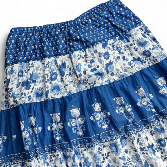 90s Lauren Ralph Lauren Boho Cottagecore Tiered Floral Midi Skirt Blue Women’s Large 100% Cotton