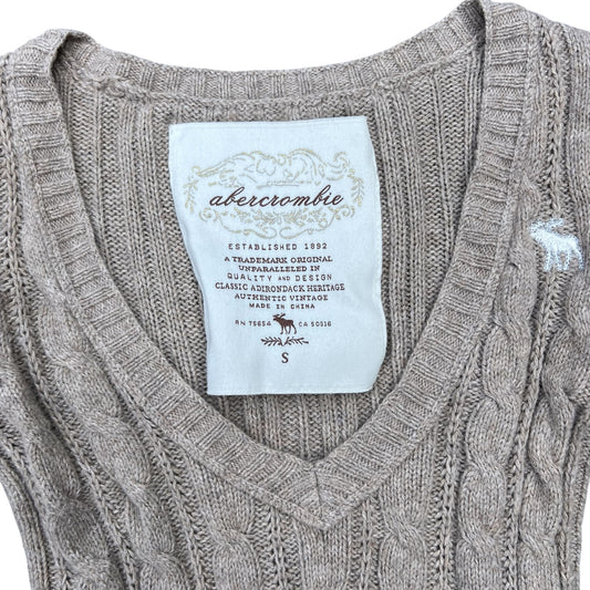 Y2K Abercrombie & Fitch Biege Cable Knit Longsleeve Sweater Deep V-Neck Women’s Small