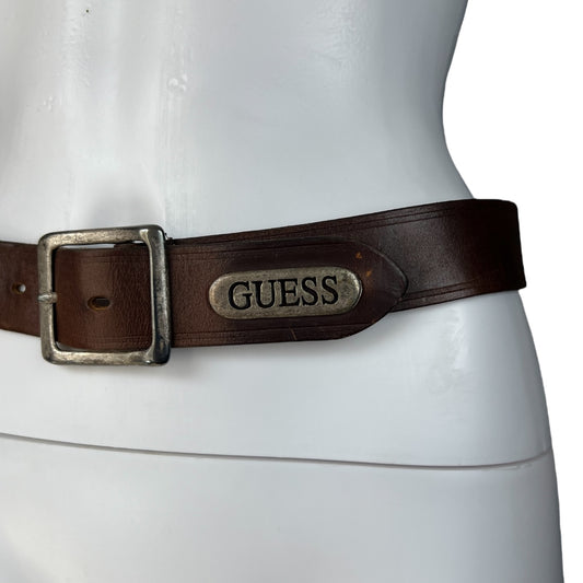 90s Guess Brown Leather Belt Women’s XS Made in USA 30 1/2”