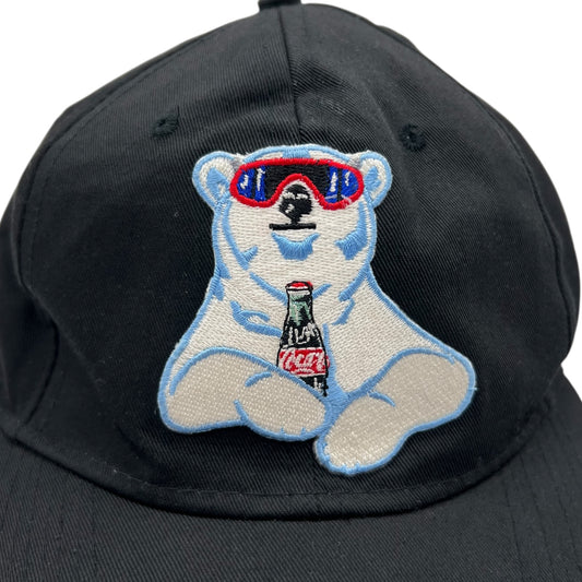 Vintage Coca Cola Embroidered Polar Bear Black SnapBack Hat One Size