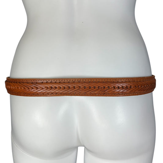 Vintage Brown Leather Western Belt Woven Center Leather Buckle 32 Made in Mexico