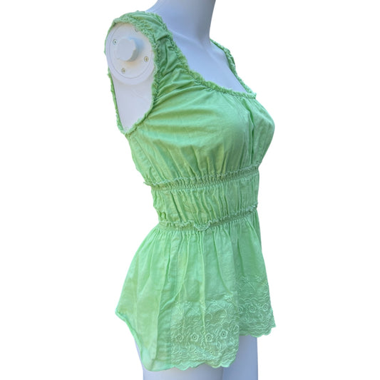 90s Y2K Fang Green Cap Sleeve Eyelet Top Ruched Women’s Large