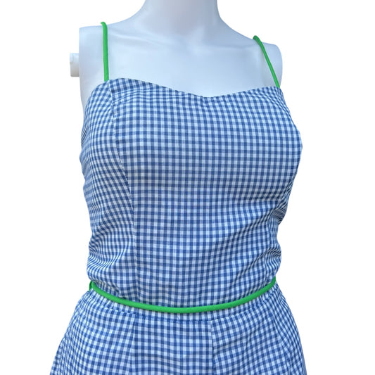 Vintage Sea Waves Blue Gingham Play Suit Romper Lined Women’s 14 Made in USA Talon Zipper