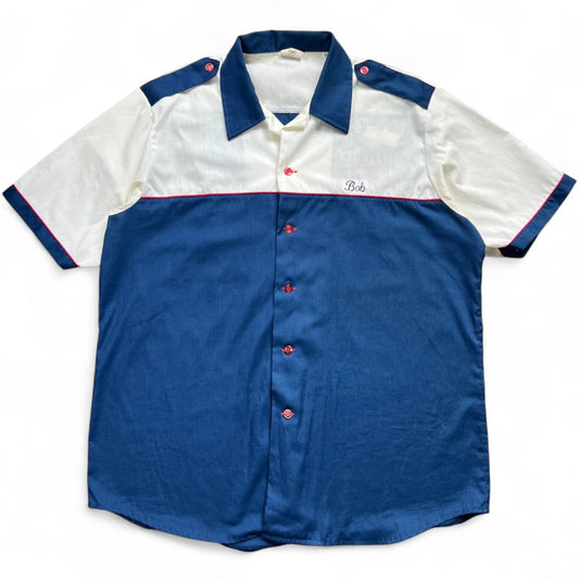 70s King Louie Bowling Shirt Arnold’s Auto Glass Muskegon MI Men’s Large Chain Stitched