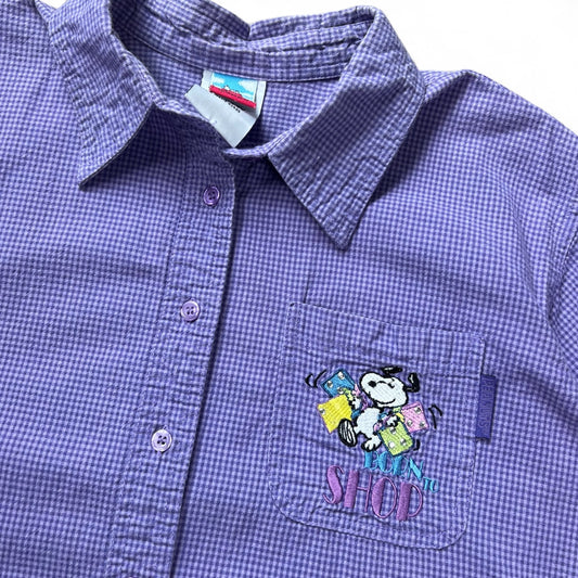 90s Peanuts Snoopy Lavender Gingham Born to Shop Embroidered Button Up Women’s 18/20W