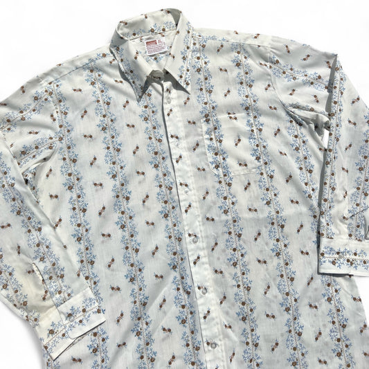 70s Montgomery Ward Vertical Floral Stripe Dagger Collar Button Up Shirt Men’s XL 17-17 1/2