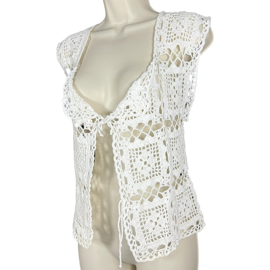 Vintage Handmade Crochet Cardigan Vest Women’s XL Boho Cottagecore