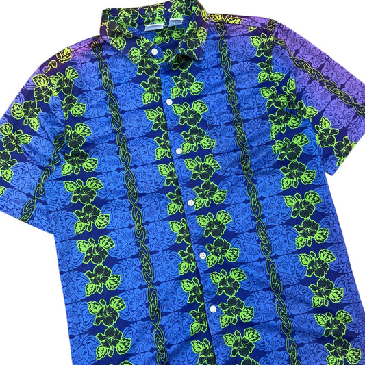 90s Y2K Utility Mesh Hawaiian Button Down Ombré Floral Neon Design XL