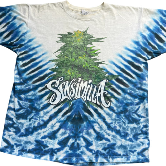 Vintage 90s Marijuana Stoner Sensimilla Blue Tie Dye Crewneck T Shirt Men’s XL