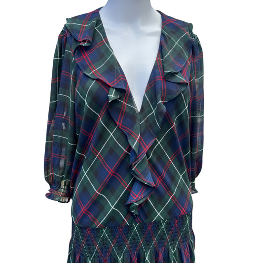 Lauren Ralph Lauren Plaid Georgette Ruffle Midi Dress Women’s 14