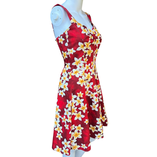 Vintage Royal Hawaiian Creations Red Floral Sleeveless Dress Smocked Women’s Med