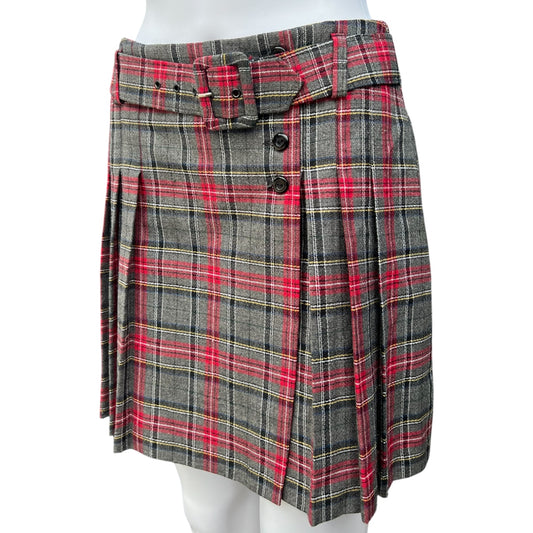 90s 579 Gray Plaid Pleated Mini Skirt Belted Women’s 7 Made in USA