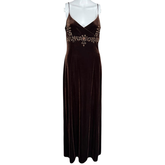 Y2K Dave & Johnny by Laura Ryner Brown Velvet Bead Embellished Maxi Gown Mesh Women’s 9/10