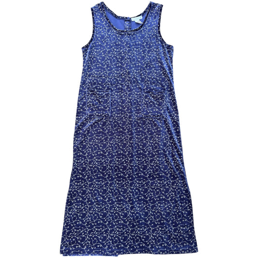 90s Y2K Claudia D Blue Velvet Overall Jumper Maxi Dress Floral Print Women’s Large