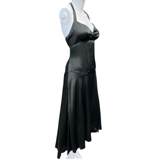 90s Y2K Max and Cleo Black Silk Satin Halter Dress Women’s 8