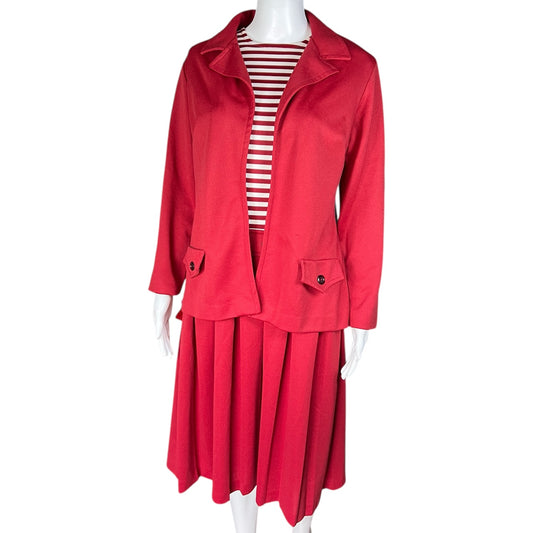 70s Sears Burgundy Striped Pleated Dress and Jacket Set Women’s 18