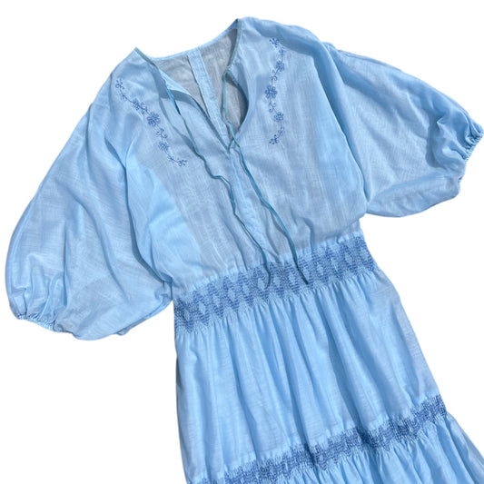 Vintage 70s Jodi of California Blue Floral Prairie Maxi Dress Tiered Layered Skirt L/XL
