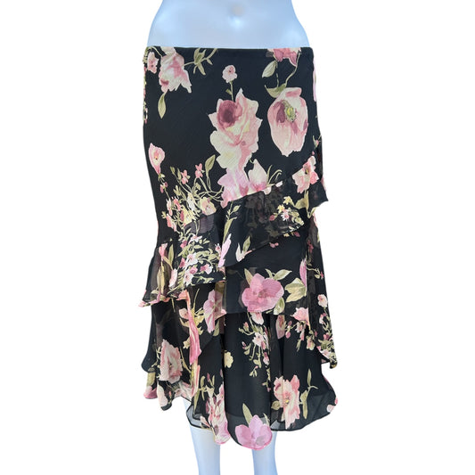Y2K Lauren Ralph Lauren Silk Chiffon Asymmetrical Floral Midi Skirt Women’s Large