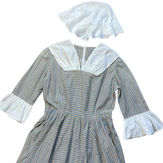 Vintage Handmade Dutch Tulip Time Floral Print A-Line Dress Sailor Collar 3/4 Flared Sleeves Women’s 2XL