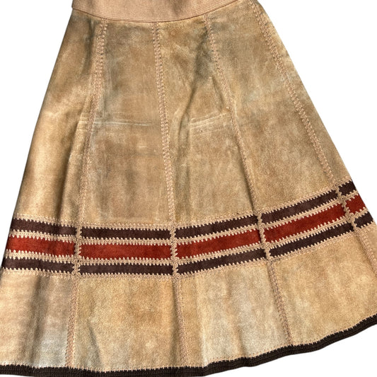 Vintage 60s 70s Suede Acrylic Knit Patchwork Leather Midi Skirt A-Line Women’s 15/16