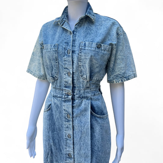 80s Vivaldi Acidwash Denim Button Up Midi Dress Women’s 8 Made in USA
